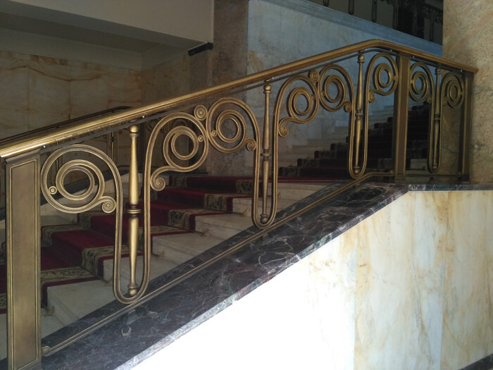 В интерьере фойе мое внимание, помимо Диоскуров, привлекла ограда парадной лестницы, сохранившаяся со времен посольства.