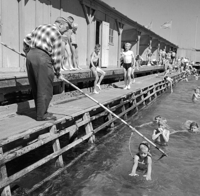 Демонстрация устройства для безопасного купания. США, Питтсбург, 1910 год.