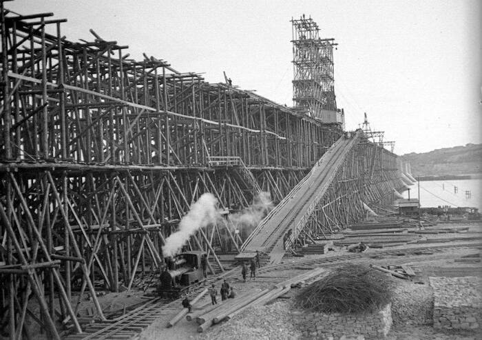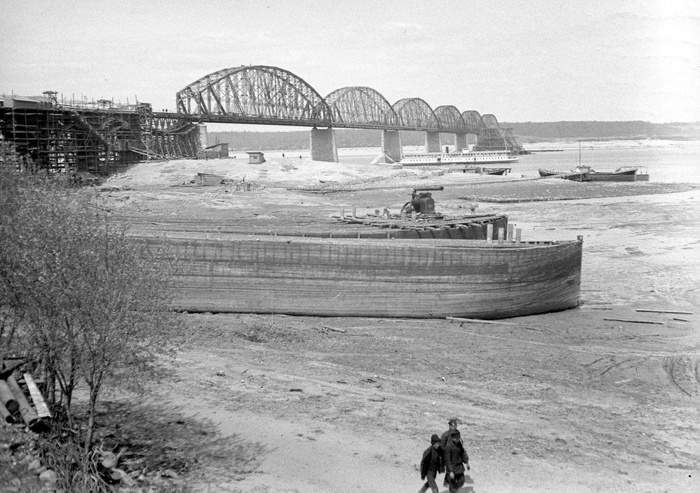 Строительство Романовского моста. Зеленодольск, 1911-1912 год. Когда-то путешествие по железной дороге из Москвы в Казань было настоящим приключением. Пассажиры, прибывавшие в Свияжск, вынуждены были покинуть поезд и продолжить путь на конных подводах до Волжской переправы. Там их ждал паром, который перевозил через реку, после чего можно было сесть на другой поезд и завершить путь до Казани. Грузовые вагоны переправляли зимой по льду, а летом — на специальных паромах. По случаю 300-летия дома Романовых было принято решение о строительстве железнодорожного моста через Волгу. В 1911 году был утверждён проект, автором которого стал известный инженер Николай Аполлонович Белелюбский. В феврале того же года состоялась торжественная закладка моста.
