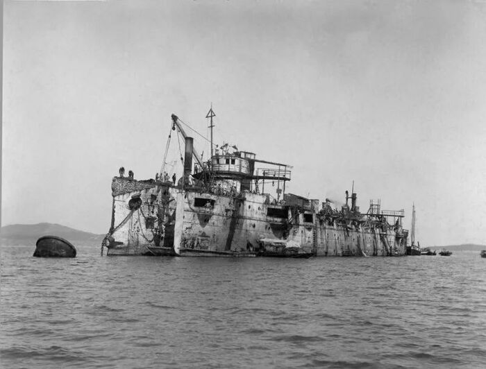 Японцы поднимают русский крейсер "Варяг". У города Чемульпо. 1905г.