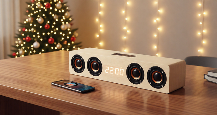 Прямоугольная колонка с 4 динамиками представляет собой универсальное решение для музыки и развлечений. С её помощью вы можете наслаждаться музыкой по Bluetooth, настроить радио или даже использовать её как будильник с часами. Для разнообразия можно использовать TF-карту памяти или проводное подключение.