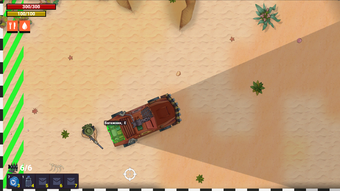 Игрок на глобальной карте без машины. Но не надо бояться. Машина никуда не убежит и даже рейдеры не снимут покрышки. К ней всегда можно вернуться. Или не возвращаться никогда... Я хотел дать игроку свободу в этом вопросе.