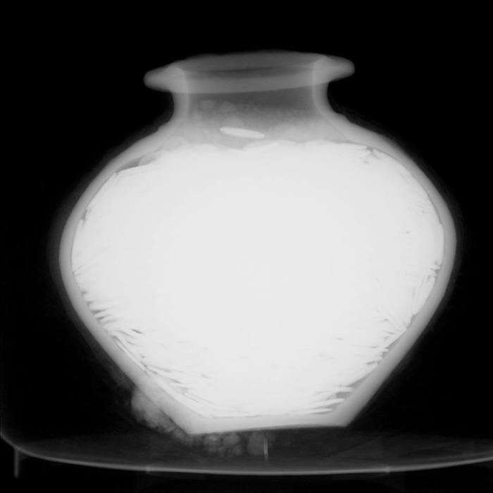 Британские ученные не торопились вскрывать горшочек. Целый месяц историки счищали пыль с сосуда, боясь повредить содержимое. Одному из лаборантов пришла в голову идея, просветить горшочек на рентгеновском аппарате. Ученые пригласили копателя и в его присутствие сделали пару снимков. Кладоискатель оказался прав - Горшок до верху был набит старинными монетами!