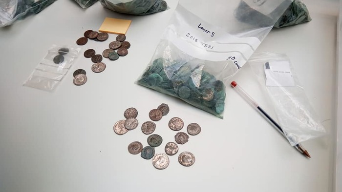 Чтобы выяснить из какой эпохи данный клад, сосуд засунули в томограф, не зря. Видео получилось завораживающим и показало расположение каждой монеты, четкие рисунки аверса и реверса не оставили сомнений - это были римские Динарии 3-4 века нашей эры! Всего 1820 шт!