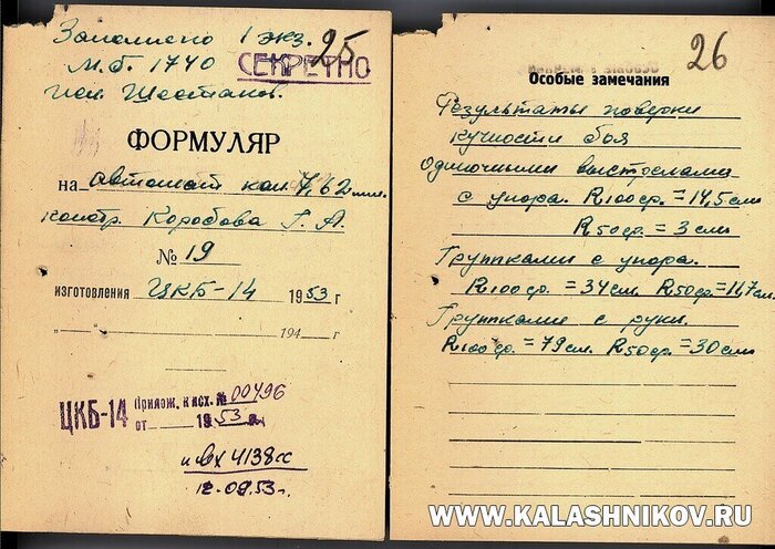 Не нужно быть особым провидцем, чтобы понять: ствол автомата был заменён для каких-то работ с ним, но когда, кто и зачем это сделал, было непонятно. Однако эти сомнения не носили критического характера и относились автором к второстепенным событиям, не имевшим влияния на существующую канву событий, сопровождавших рождение АК-47. Однако в этой части истории АК-47 № 1, всё оказалось совсем не так, как считалось до сих пор. И помогли в ней разобраться, как это чаще всего бывает, документы полигона ГАУ (НИПСМВО), хранящиеся в архиве музея.