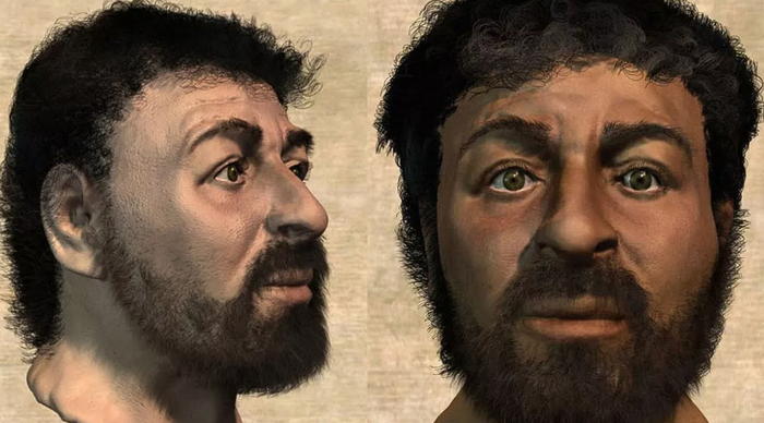 А вот реконструкция, которая указывает как выглядели люди того времени в местах, где он родился: