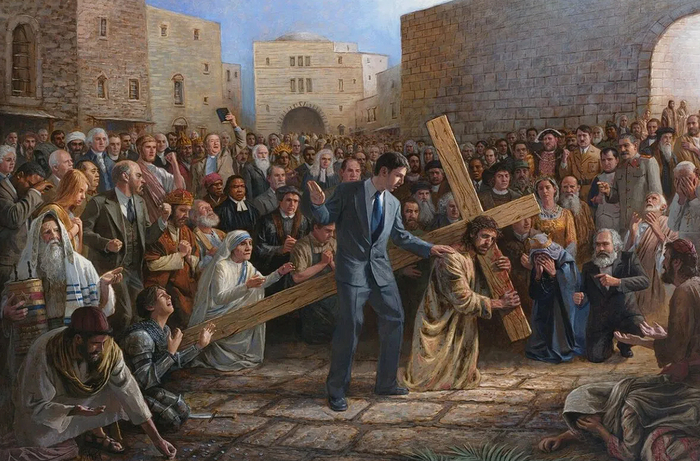 Есть потрясающая картина, которая показывает, что на крсте Иисуса кто только за 2000 лет не выезжал: