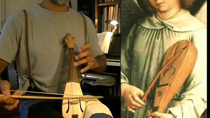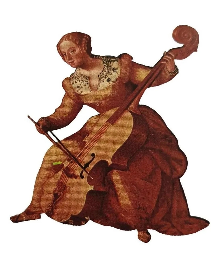 На верхней деке инструмента делаются прорези - эфы, в форме латинской буквы f, а с внутренней стороны к ней прикрепляется длинная деревянная планка, подобная пружине. Эта планка служит для передачи вибраций на опоры, которые поддерживают верхнюю деку. После того как мастер отполирует инструмент, он прикрепляет гриф и другие внешние детали. Внутрь корпуса помещается душка – своего рода мостик, который переносит звуковые колебания с одной деки на другую.