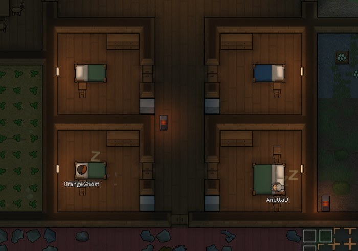 Вот так и прошли первые дни на новом месте у наших персонажей. По итогу все более-менее целы, а на складе с едой лежит пара бутербродов на утро. Будем и дальше присматривать за нашими счастливчиками.
