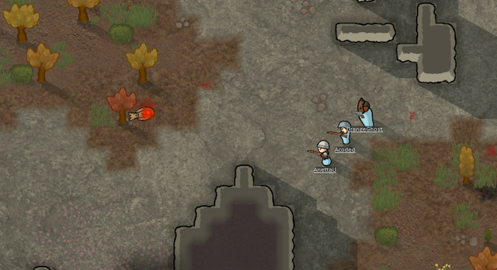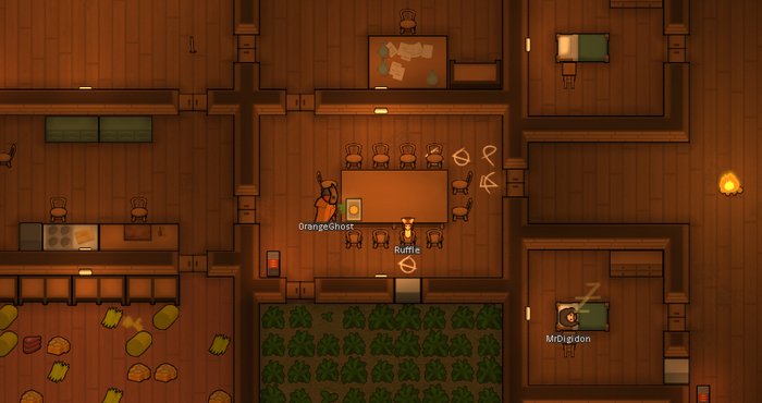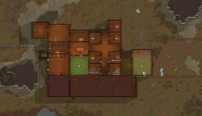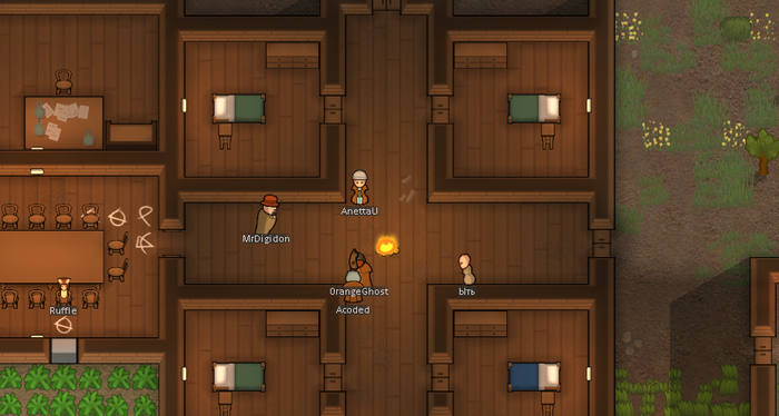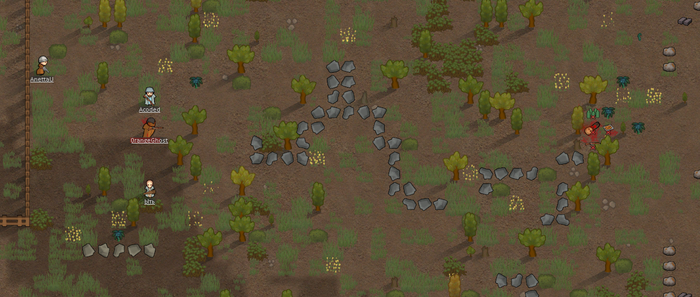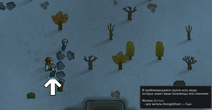 Началась более светлая полоса в жизни поселения. Через поселение начали ходить нейтральные караваны и просто группы персонажей. Некоторые даже оставляли подарки, видя плачевное состояние поселения. Со временем караванщики начали сообщать о тайниках недалеко от нашего поселения. Конечно, хорошо бы отправить хоть одного персонажа на сбор полезных ресурсов, но в это время в самом поселении уже начались серьёзные проблемы с едой. Оранжу даже не повезло один раз отравиться, так как нормально готовить у Ако получается от раза к разу — как повезёт. А может, это у Анетты не получается вырастить здоровую картошку, оттого и готовые блюда временами получаются едва съедобными.