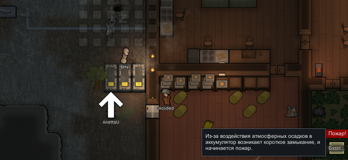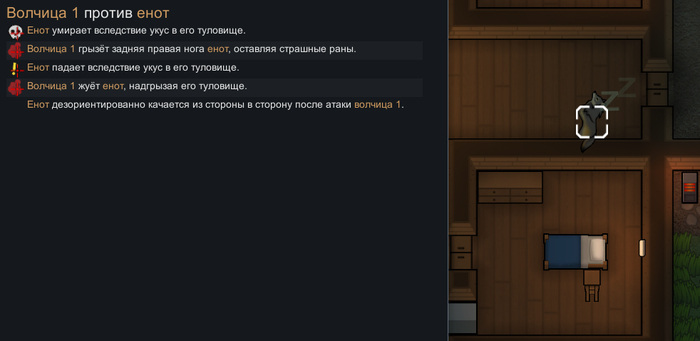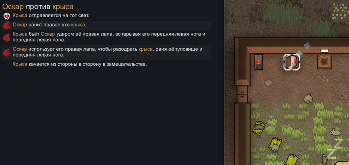 А вот и первое нападение случилось! Один полуголый мусорщик из Ядовитой Группы с ножичком решил испытать наших персонажей на прочность. Это была первая и довольно лёгкая победа. Оказалось Ако довольно хороший стрелок. Ещё до нападения он уже успел поохотиться на местных животных, вспомнил как пользоваться винтовкой. Кстати, эти мусорщики из Ядовитой Группы впоследствии будут постоянно захаживать в гости.