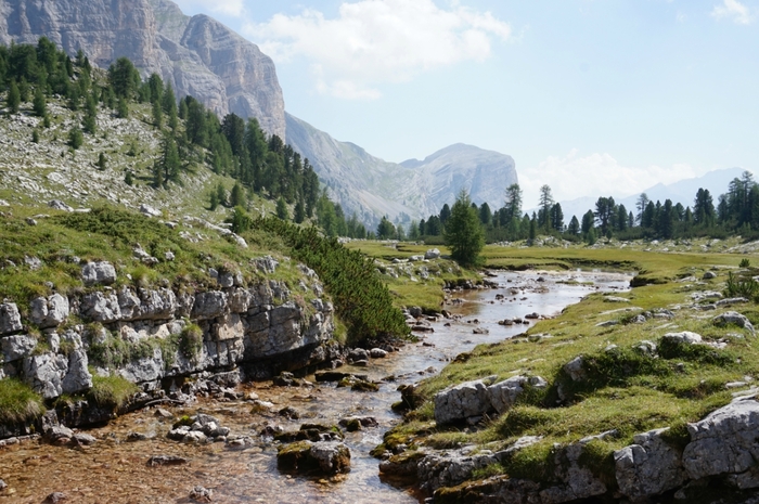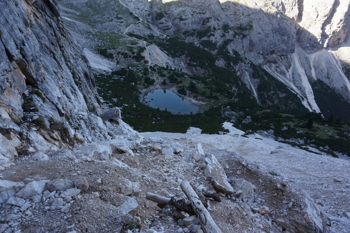 а вот это СЮРПРИЗ! Дальше дороги нет! Видимо вода здесь знатно повеселилась. Ручьи перемешали тропу до самого озера с кустами, деревьями и щебнем. И не один раз. Просто груды щебня! Все это разного размера и степени сыпучести. Где-то прыгаю по камням где-то ноги проваливаются в смесь воды и каменной крошки. Спасибо кроссовкам LaSportiva! Не подвели! Они-то и по дороге себя шикарно показали! Нигде не скользили! И даже самые каверзные и острые камни в них не ощущались! А тут они меня просто спасли! Правда и ушатал я их знатно пот этому апокалипсису.
