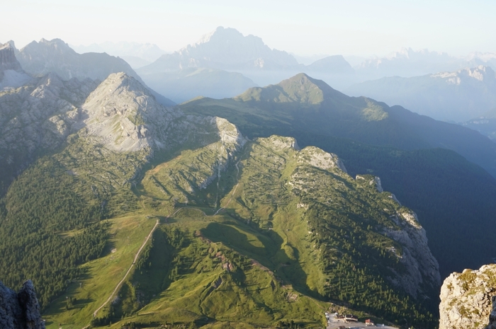В 6 утра школьников выгнали из столовой на лестницу чтобы начать готовить. Я тоже не стал задерживаться и стартовал на выход. Преодолев перевал делаю остановку на завтрак, с видом на разгорающееся начало нового дня.