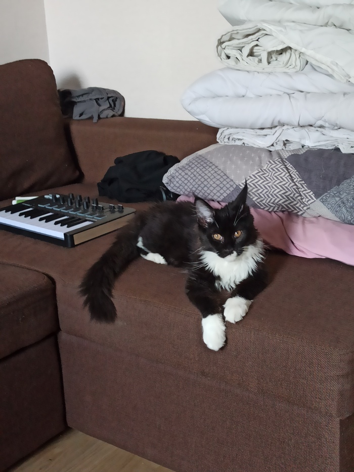 Вот уже прошёл месяц, как мы стали счастливыми (и уставшими, если по-честному) обладателями куна. Назвали Максвелл, потому что мем с крутящимся котом и потому что оба с моим молодым человеком технари)