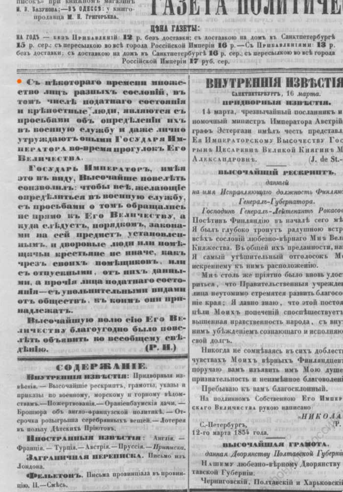 1-3. Северная Пчела. 1854, №121 (1 июня). https://vivaldi.nlr.ru/pn000110331/details.