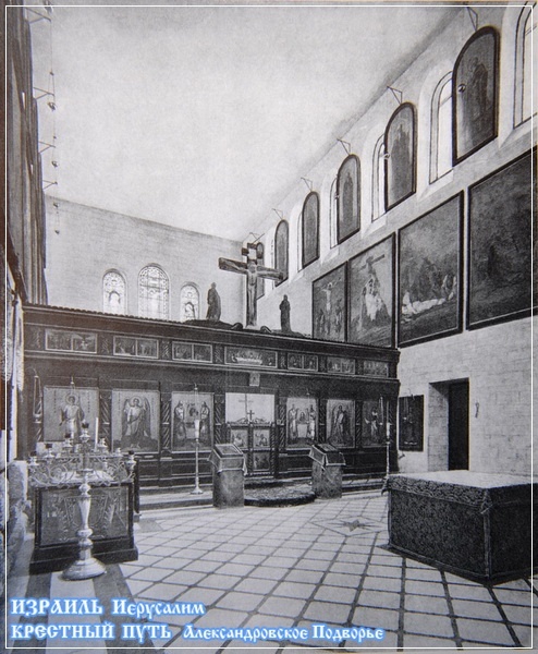 « … Следующей главной заботой строителей было устроение церкви на подворье, которое требовало согласия Иерусалимского Патриархата, католического духовенства и турецкого правительства. Оттоманский Паша вообще запрещал какое-либо строительство на подвластных ему территориях, католики стояли на страже своих интересов, а Иерусалимская церковь заявила свой протест официально, опасаясь того, что русская церковь будет находиться рядом с главной святыней христианства – Храмом Воскресения Христова. Одним из условий Иерусалимского Патриарха о принадлежности церкви было категорическое заявление о том, что церковь должна принадлежать ЦАРСКОЙ ФАМИЛИИ, а не Палестинскому Обществу, в доме которого она будет находиться.