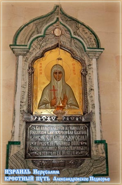 « … Великая княгиня Елизавета Фёдоровна продолжила дело своего мужа на Святой Земле, возглавив ИППО с 1905 года. Вплоть до своеймученической кончины под Алапаевском, великая княгиня делала ежегодно пожертвования на строительство подворий, школ и больницна Святой земле, а также руководила всеми делами Общества. 18 июля 1918 года великая княгиня вместе со своей келейницей монахиней Варварой, великим князем Сергеем Михайловичем, тремя сыновьями великого князя Константина Константиновича Иоанном, Константиноми Игорем, а также князем Владимиром Палей и Ф. М. Ремезом была заживо брошена в шахту старого рудника. Её честные мощи покоятся ныне в Иерусалиме в храме святой Марии Магдалины….»