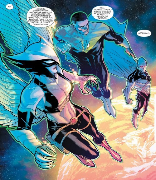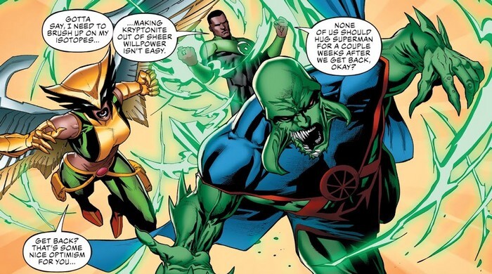 Так что перейдём-ка к комиксу Justice League #22 от Шей Фонтаны и Филиппа Брайонса. На борт Сторожевой Башни Лиги Справедливости поднимается Лоис Лэйн, чтобы взять интервью у героев. Джон Кент (сын Супермэна и Лоис) тоже там, радуется возможности пообщаться с героями. Поначалу всё идёт спокойно...но в какой-то момент Киборг (Виктор Стоун) засекает присутствие на борту незадекларированной жизнеформы. И не одной. Саймон Баз и Джессика Круз (Зелёные Фонари) покрыты какими-то незнакомыми микроорганизмами (недавно от астероидов отмахивались, может, оттуда занесли), и эти микроорганизмы невероятно быстро размножаются. Джессика хочет домой, но об этом не может быть и речи – Сторожевая Башня переходит в режим карантина. Нужно выяснить, что это за микроорганизмы, разумные ли они (в космосе всякое бывает), опасные ли они. До той поры – никому нельзя прибывать в Башню или покидать её.