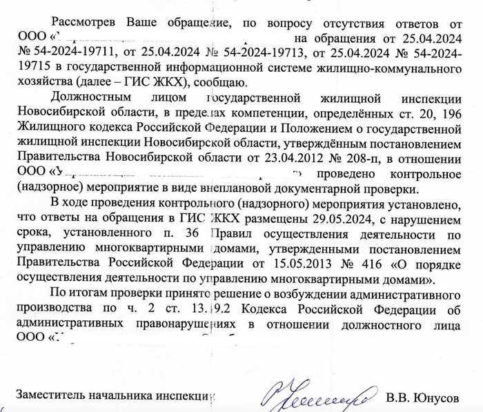 В данных действиях я усматриваю нарушение лицензионных требований по управлению многоквартирным домом со стороны ООО, ИНН .