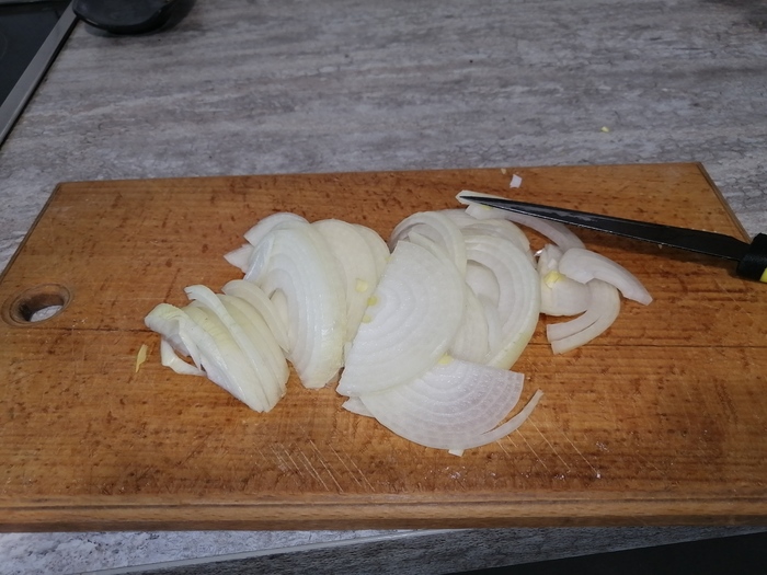 Тем не менее, по принципу- хороший понт, дороже денег, в раскаленное масло, закладываю луковицу. Очередной финт используемый, для придания чувства собственной значимости, окружающей публике. Бытует мнение, что якобы лук в раскаленном масле, вбирает в себя все какие то вредные вещества и посторонние запахи. На самом деле это не так. И как я говорил выше, актуально это в том случае, если готовим плов на зигире. Когда готовим на рафинированном масле, нет ничего вредного и запахов в масле тоже. Если я сам готовлю, без зрителей, тогда никаких луковиц не обжариваю. Только для красивой картинки!