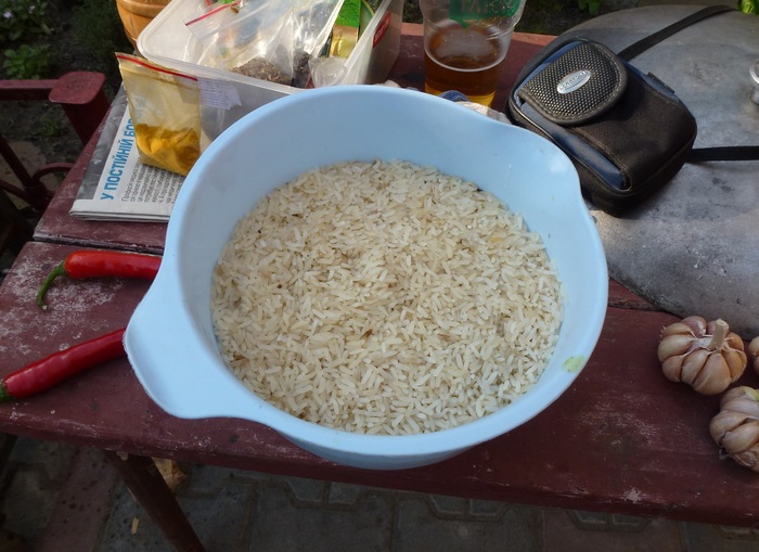 Летние готовки на даче, в зимнее время, воспринимаются по особенному. Даже не очень удачные опыты приготовления, кажутся шедеврами. Всего лишь из-за того, что нет возможности сейчас это повторить в силу многих причин. Чего я не могу сказать о плове, который готовил летом на своей даче. Получилось все вкусно. Как никогда! Не претендую на аутентичность. Готовлю так как привык. В чем то подкорректировал под свои вкусы и предпочтения. Пропорции основы следующие. Мяса, рис, морковь-все 1к1. Треть от этого лук и масло, тоже 1к1. К примеру, если мяса 1кг, то лука 300гр. Приправы- соль, зира, барбарис, куркума. Все остальное — фрукты, овощи, орехи, ягоды-это тюнинг. Тут уже по настроению и предпочтениям. Рис для плова я покупаю так. Прихожу к азиатам на рынке, которые торгуют пловом и спрашиваю у них. Что подскажут, то и покупаю. Лазер, басмати и еще какие то длиннозерные сорта. Особо не вникаю. Один раз как то не было плова в продаже, и я вроде как расстроился. На что мне сказали, что в гастрономе на против продается отличный рис для плова. Так и сделал. Важно в рисе-это его промыть хорошенько. Промываю до тех пор, пока вода не станет прозрачной. Бывает и по пол часа мою. В первую очередь, при готовке плова, промываю рис и оставляю его в теплой воде до момента закладки в зирвак. А потом, перед закладкой, еще пару раз промываю.