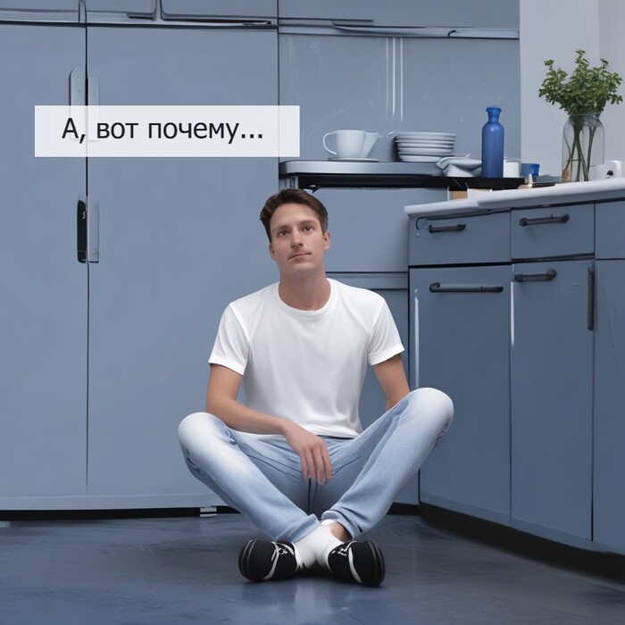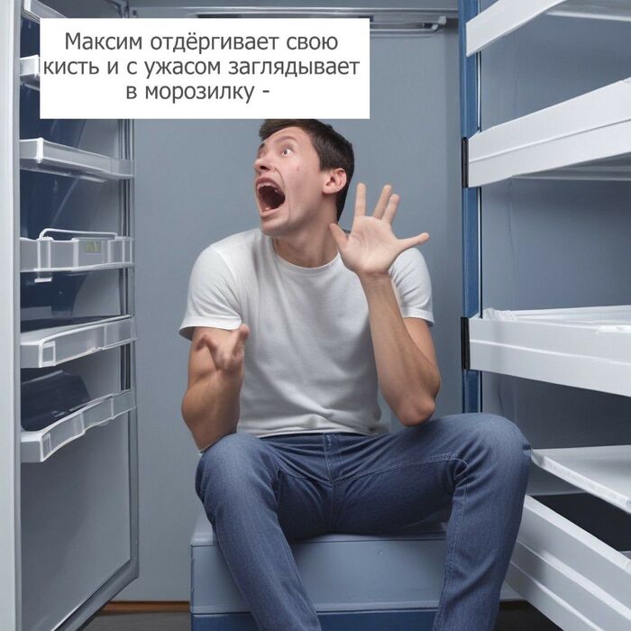 Максим решает открыть холодильник, достать оленя и закрыть холодильник.