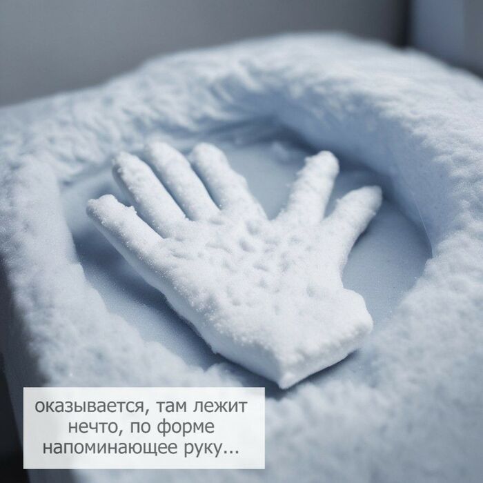 Максим отдёргивает свою кисть и с ужасом заглядывает в морозилку - оказывается, там лежит нечто, по форме напоминающее руку...