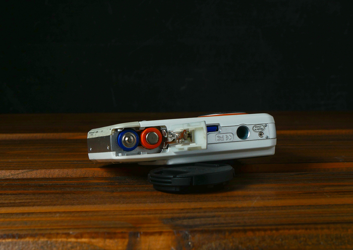 На нижней грани пластиковое штативное гнездо, всё как мы любим, и отсек для аккумулятора, совмещённый со слотом карты SD. Батарея держит очень хорошо, не ожидал такой оптимизации, или просто мало пользовались фотоаппаратом, но всё равно, могла бы и деградировать уже за столько лет. А вот крышка отсека просто пластиковая, без металлической накладки.