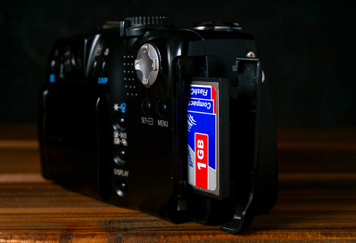С противоположной стороны только отсек для карты памяти CF, содержимое флешки, которая была в комплекте изучалось здесь.