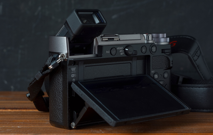 На противополжной стороне отличный сенсорный откидной экран (размер 7,5 см, формат 3:2, 1 240 000 пикселей), откидывается он вверх и вниз, для меня оптимально, лишь в редких случаях съёмки в вертикальной ориентации с низкой точки, задумываешься о дисплее, который крутится во все стороны)