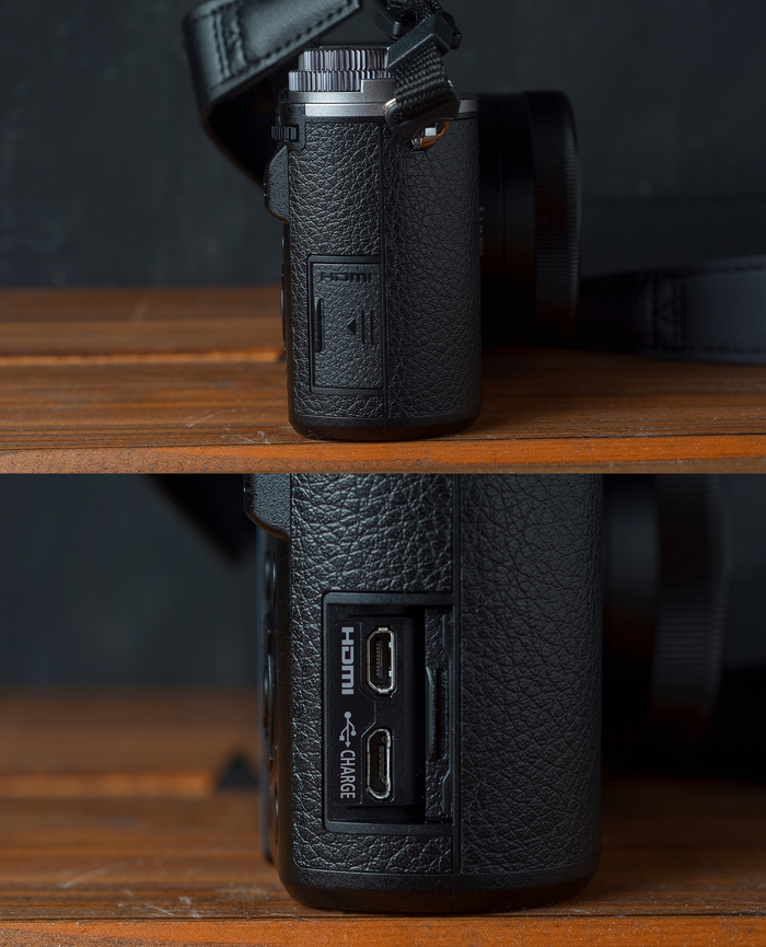 На одной боковушке за крышкой находится разъём HDMI и устаревший USB, могли бы и Type-C влепить) Кстати, зарядка производится сразу через USB, каретки для зарядки батареи отдельно от камеры в комплекте нет, но я видел, что такие продаются.