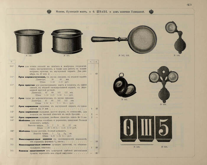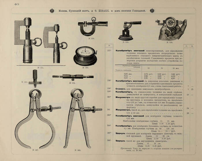 Новые физические приборы, дополнение к главному физическому каталогу О. Швабе, физико-механик и оптик Двора Его Императорского Величества, Фабрика и магазин физических, метеорологических, химических, технических, астрономических, геодезических, чертежных, медицинских и других инструментов, аппаратов, коллекций и принадлежностей всякого рода.