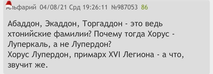 361 Aspid86 Warhammer 40k & FB Серия Категория Б Категория Б 10 месяцев назад Показать полностью 13 Wh humor Warhammer 40k Мемы Мат Картинка с текстом Длиннопост 3 3 2 1 Ещё 0