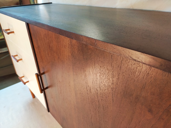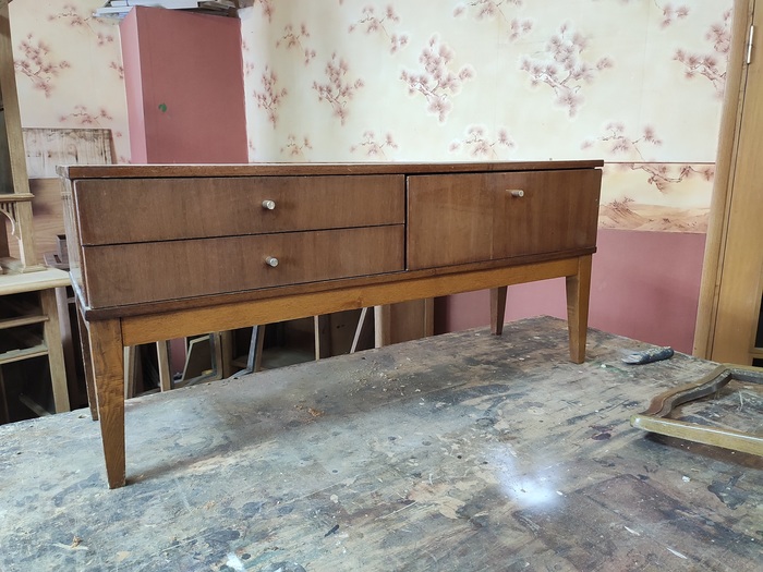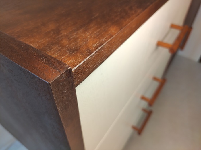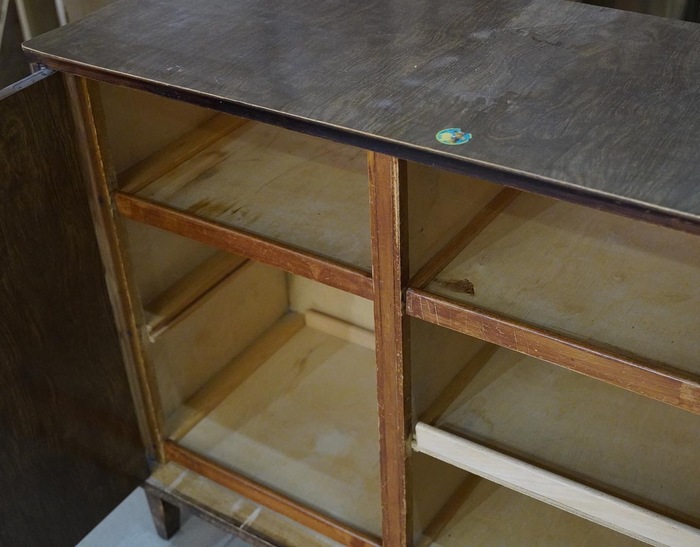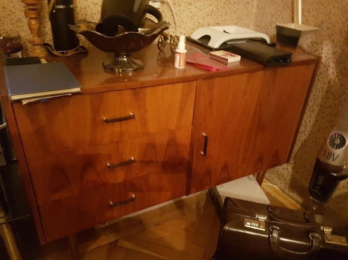 Верхний ящик облицевал тканью.