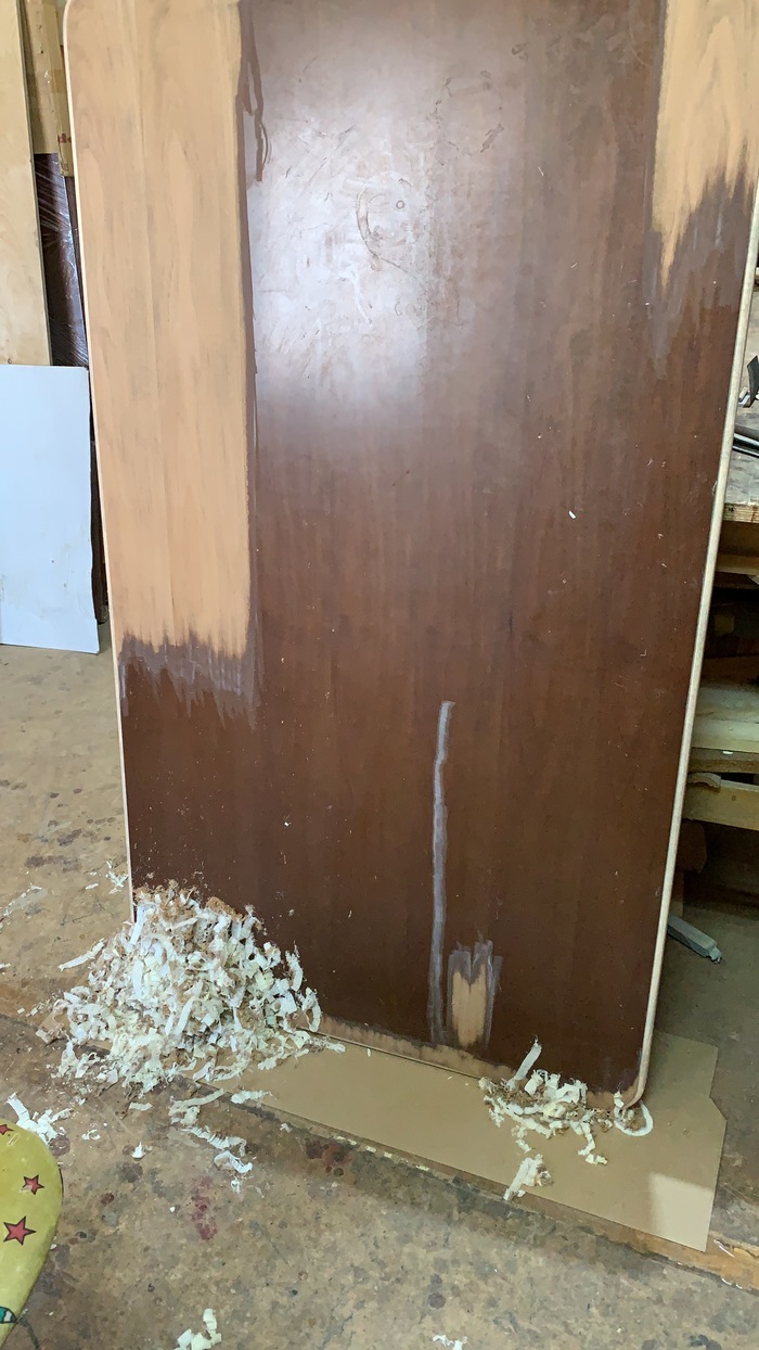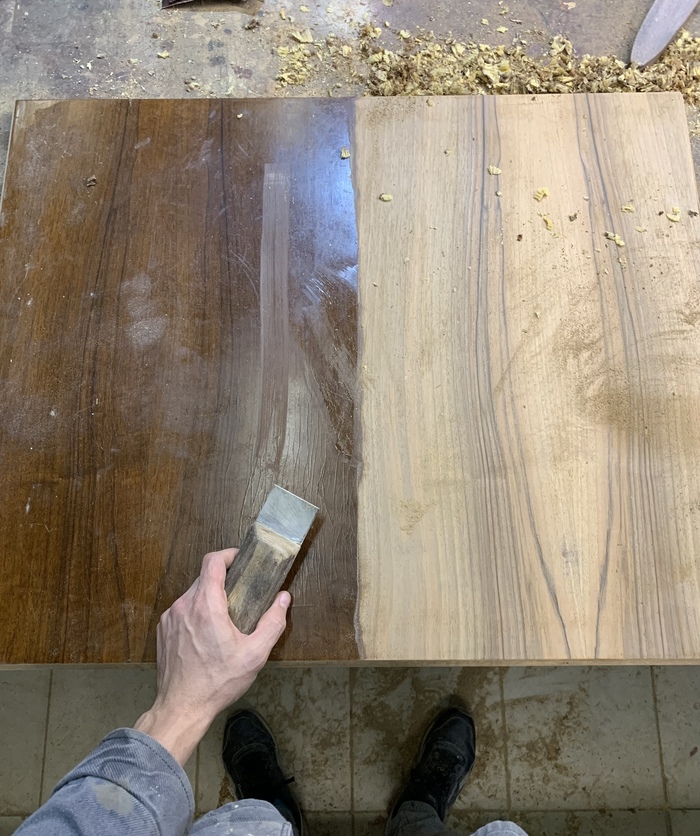 Покрытие было полиэфирным. Удалял его промышленным феном и шпателем. А он вонючий, шо писец 😬