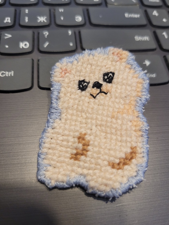 Последний этап оказался простым и руки чесались, до следующего ещё неделя. Я понимала, что времени мало для ещё одной масштабной работы и так родился мишка-брошка. Правда, подруга сказала, что это ёж. Что ж. Ну я старалась 😂
