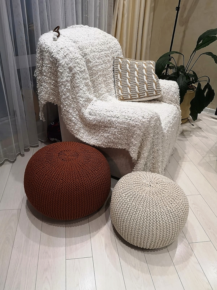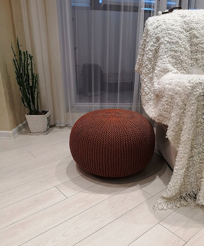 Х/б шнур круглый 5мм (400м для пуфа 55*47). Подкладка - бязь. Спицы №7.