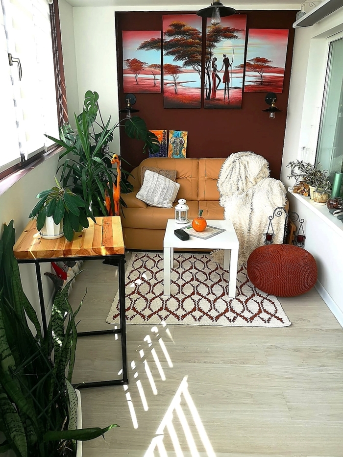 Решили доукомплектовать балкон пуфом терракотового цвета.
