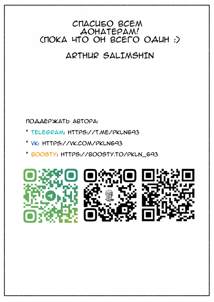 По итогу, я, преодолев все трудности учёбы, болезней и самой манги, наконец, её выпустил. Мне это даже чуть-чуть понравилось рисовать по-новому. Моя техника рисовки, кстати, тоже изменилась. Мои подписчики говорили, что если первая глава действительно такая-себе по рисовке, то вот уже во второй по их мнению она стала сочной. Третья, я думаю, стала ещё лучше. Спасибо всем за внимание. Комментарии и фидбек более чем приветствуются!