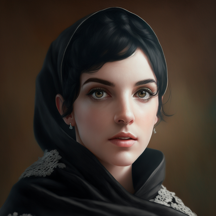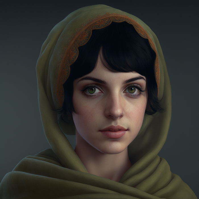 Запрос: "Diana Rigg, Young, Short, Cheerful, Turban, Long Hair, Approximately 25 years old, hyper realism, highly detailed, Unreal Engine 5, octane rendering"