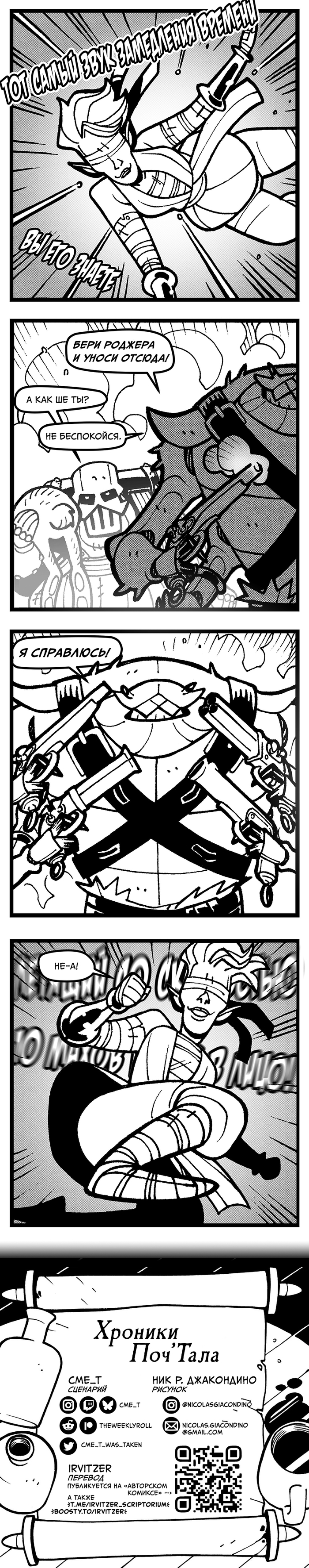 Итак, «Хроники Поч'Тала» возвращаются после длительного перерыва и, надеюсь, снова будут выходить регулярно — по крайней мере, и автор, и художник на это рассчитывают. Переводы новых эпизодов будут публиковаться, как и ранее, по четвергам при наличии возможности.