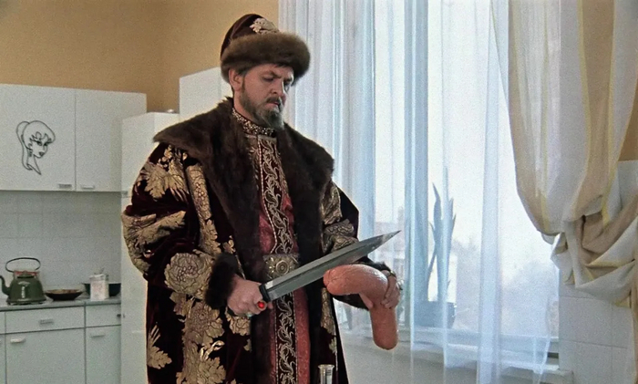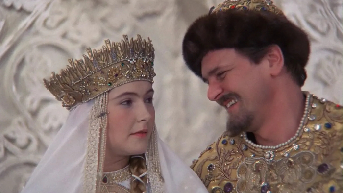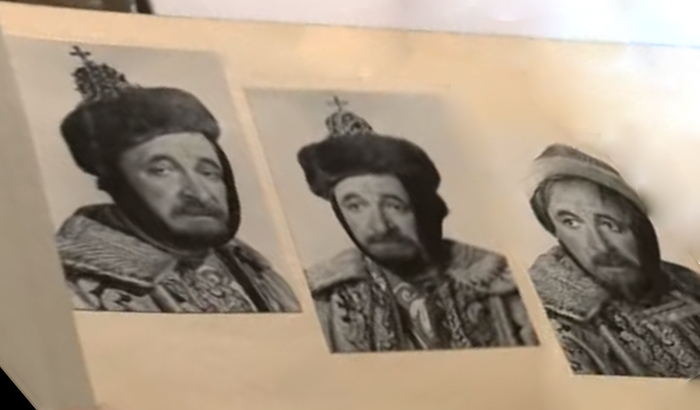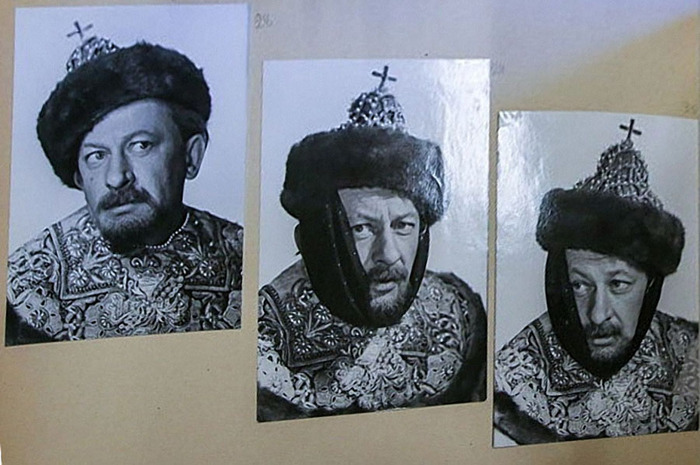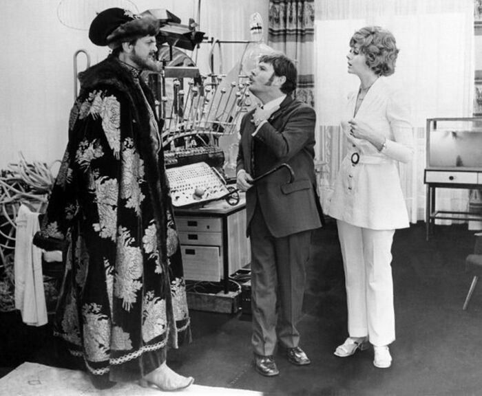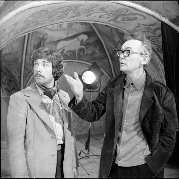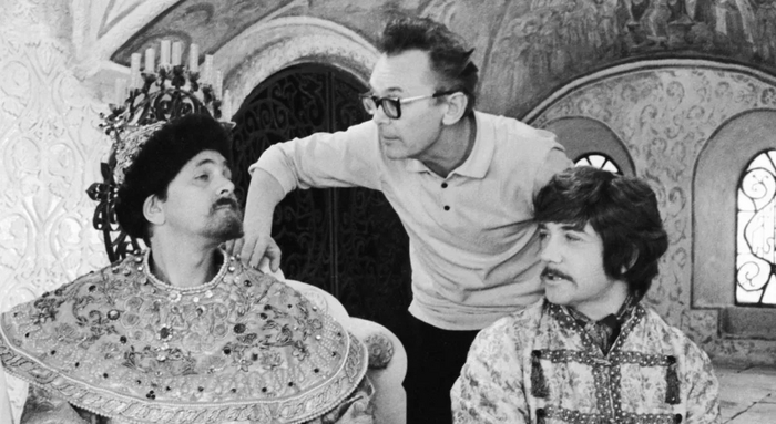 Леонид Гайдай и Юрий Яковлев в роли Ивана Грозного во время съемок фильма "Иван Васильевич меняет профессию"