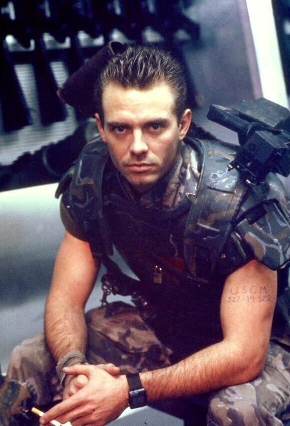 4) Майкл Бин в образе капрала Дуэйна Хикса позирует для промо-фото к премьере культового фантастического боевика "Чужие" (1986). Бин принял участие в съёмках по личному приглашению режиссёра Джеймса Кэмерона, с которым ранее работал на съёмках фильма "Терминатор". Он заменил Джеймса Римара, актёра ранее утверждённого на роль, но уволенного через несколько дней после старта съёмок из-за "творческих разногласий". Кэмерон всегда отличался тяжёлым характером амбициозного перфекциониста, не терпящим, когда его прямые указания на площадке не выполнялись, а Майкл Бин, видимо был не был любителем с ним спорить.