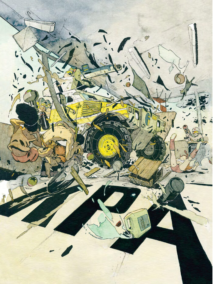 Рисунок — нервный, порой агрессивный, создающий мрачное, почти готическое впечатление.