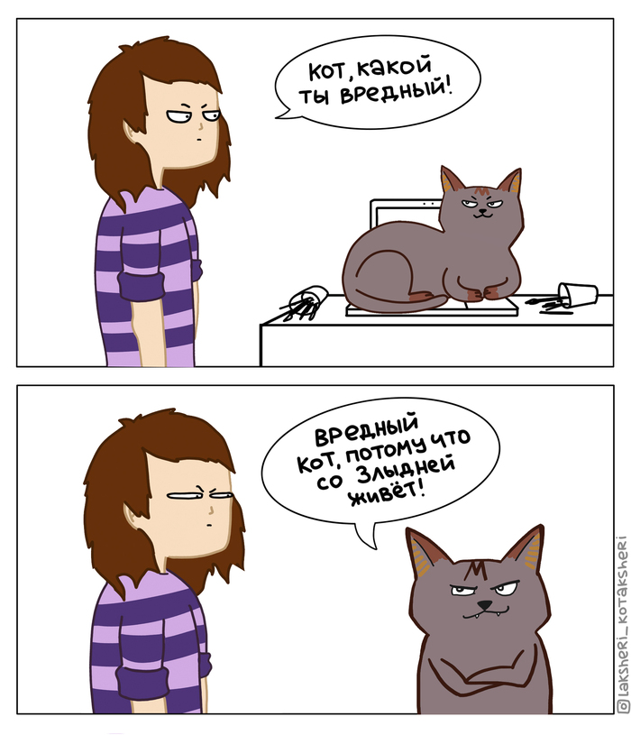 34 lakserikotakseri Юмор со всего света Серия Кошачьи комиксы Кара кошачья 1 год назад Завели котика и думаете, что всё будет просто? Будьте готовы столкнуться с шерстью! И с кошачьими воплями: И с тем, что теперь все двери должны быть открыты: Показать полностью 3 [моё] Юмор Комиксы Милота Кот Длиннопост 1 Ещё 0