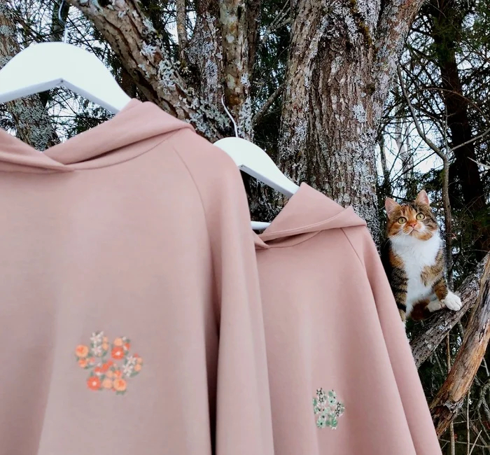 Привет, Пикабу! Мы с моими кошачьими помощниками все лето наслаждались солнцем, но взглянули сегодня на календарь и поняли - самое время возобновить активную работу нашей мастерской "Кошки шьют одежки" и немного утеплиться! Прошлой весной мы изготовили для пикабушников чуть меньше ста свитшотов с начесом. Большая благодарность вам, ребята, от души!