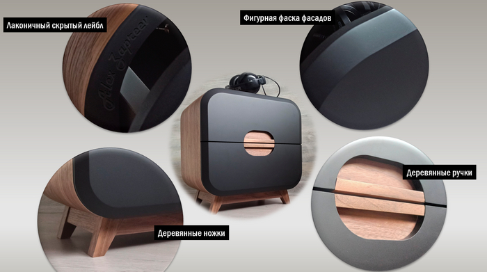 Для образца было выбрано максимально простое наполнение, т.е. никакое: только сама тумба и дубовые ножки, ни полок, ни ящиков.