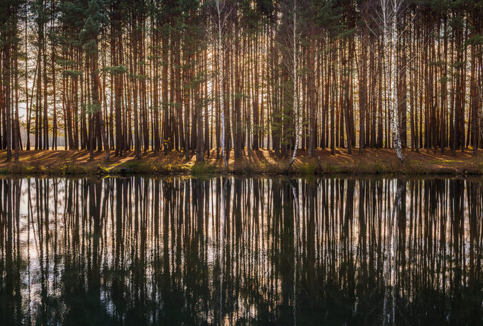 Осенью карьеры особенно хороши: в прозрачном воздухе отражаются сосны, берёзы клонятся к воде, а тишина густеет, будто становится осязаемой и ее вот-вот можно будет потрогать…