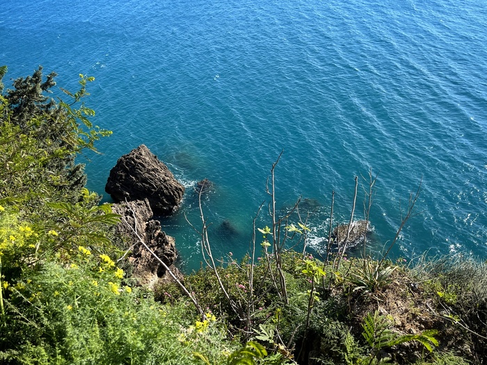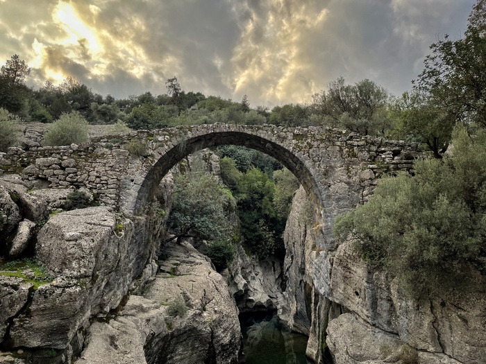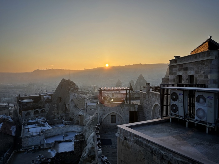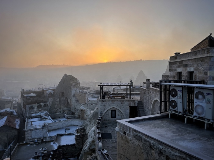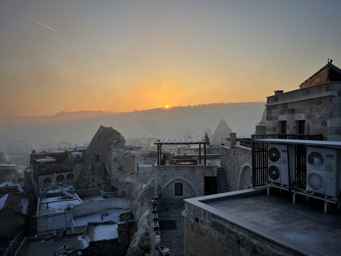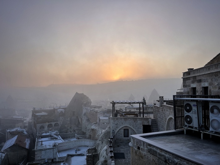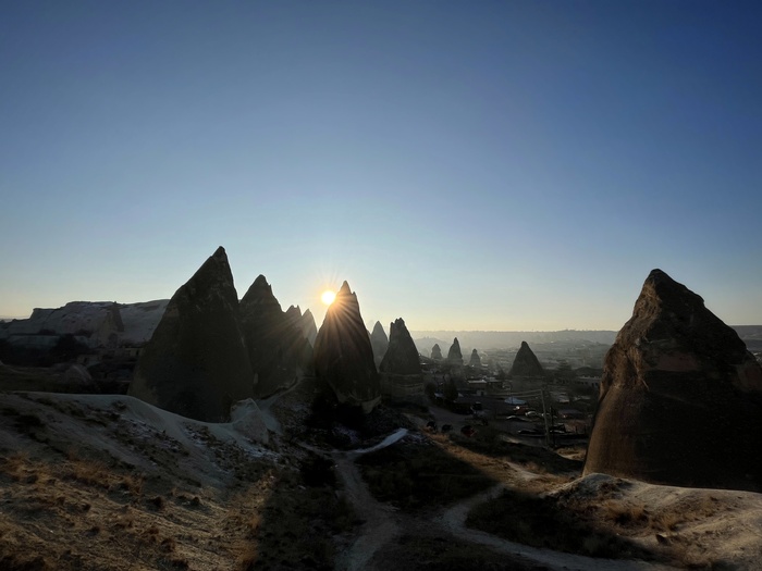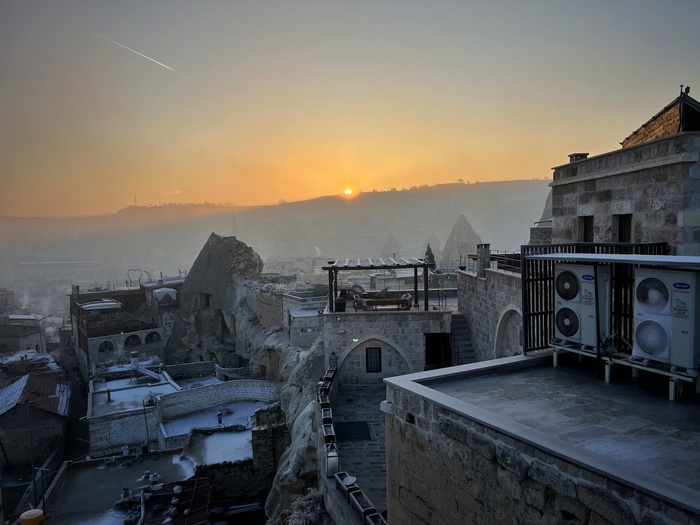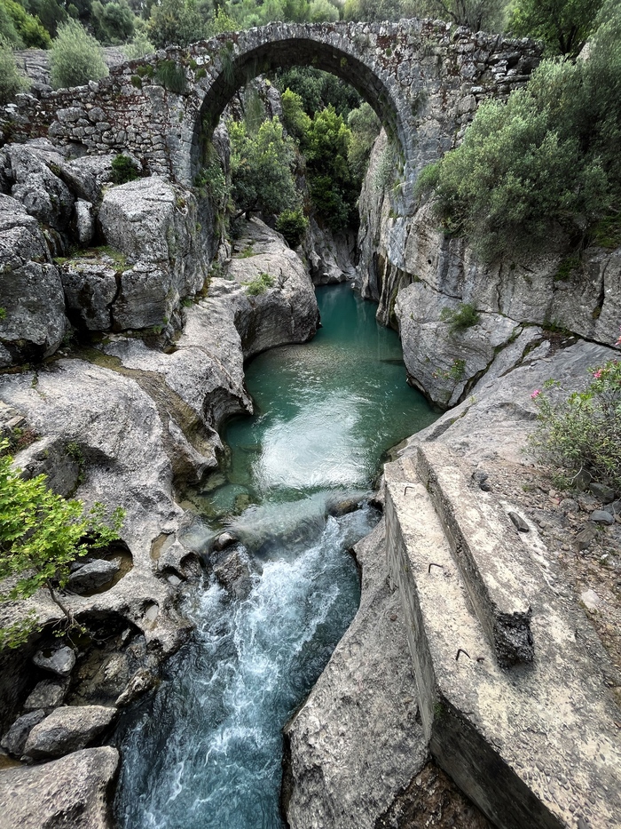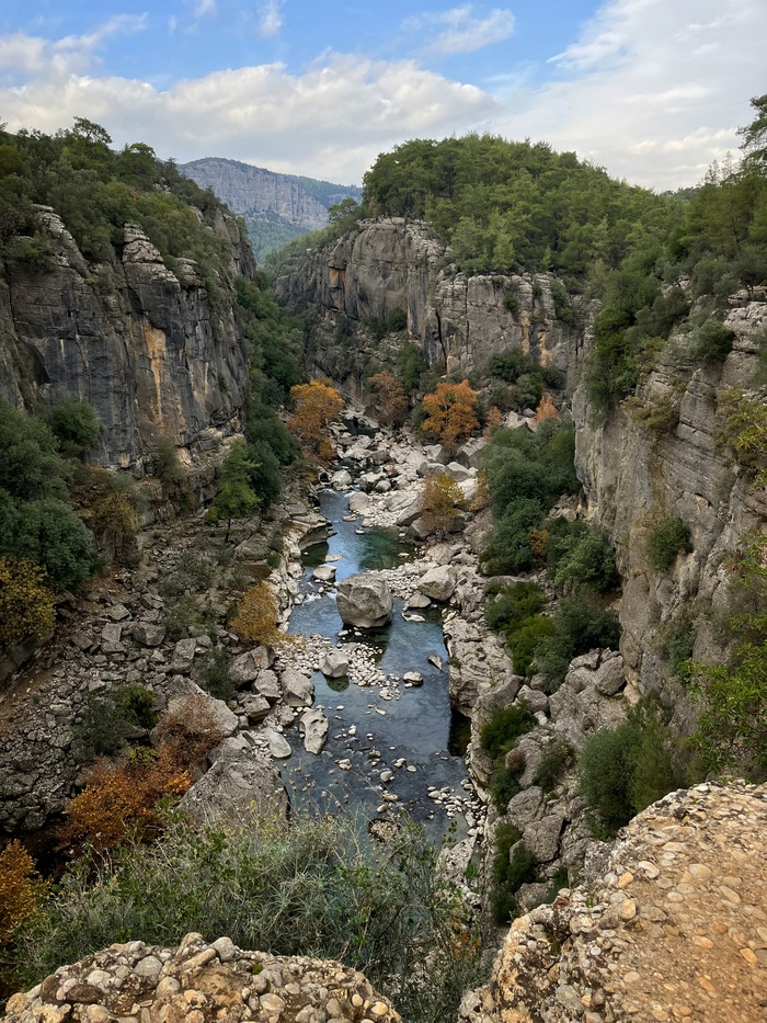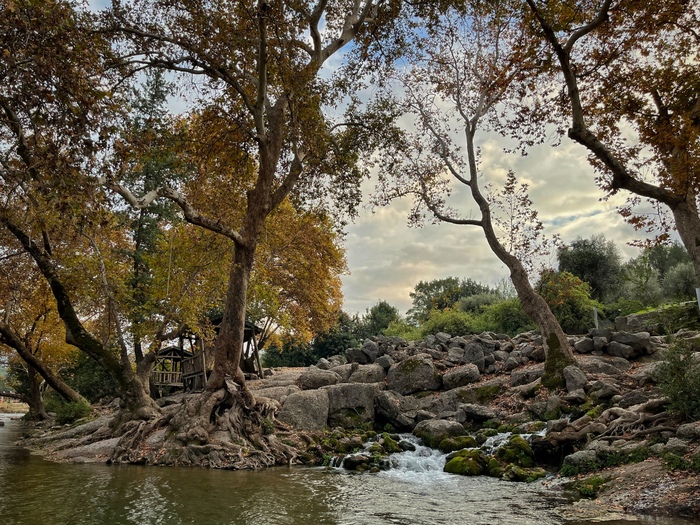 Там прокопали канавку, по которой и пустили всю воду, осушив значительную часть травертинов, чтобы с помощью палящего солнца вернуть им первозданный вид. В этом теплом потоке и сидят теперь по вечерам туристы, любуясь закатом) Жаль, дно не скользкое, а то вышли бы еще и славные водные горки)