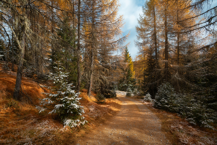 Бывают такие дни, когда начинаешь понимать, что осень уходит и надо ловить этот последний день. Откуда-то появляется ветер, сдувая золото с деревьев, и кидает в лицо мелкий снег. Дальше будут только тучи, голые деревья и меланхолия. Главное этот день не просидеть дома, так как ощущение уходящего тепла золотой осени незабываемо, а ждать его потом целый год. Мне тут повезло.
